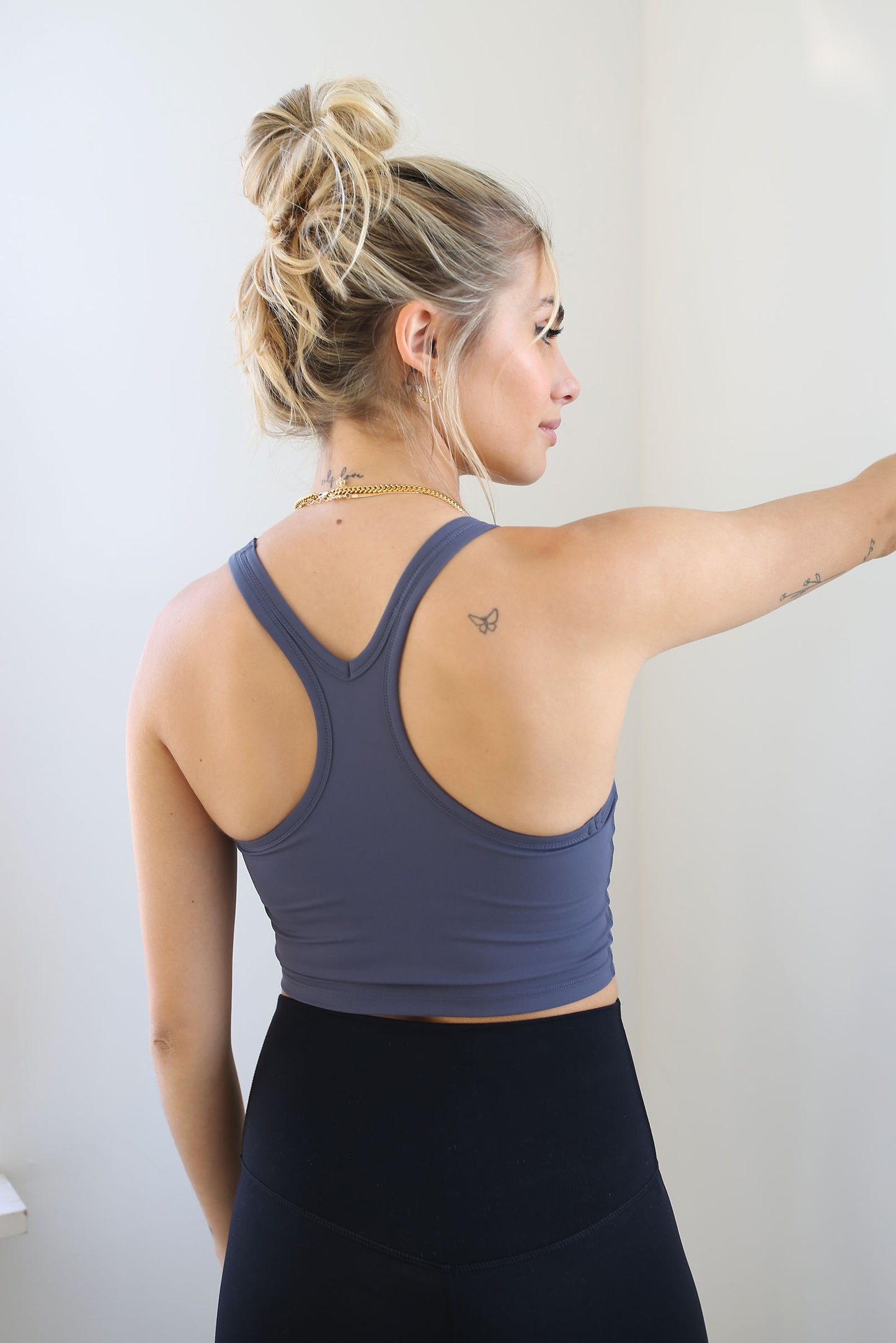 The Racerback Crop Tank is lightweight and made with a nylon and spandex blend fabric. With a scoop neckline and compressive and flattering fit, it offers just enough coverage to support your every move. Offering a built-in bra with light removable padding.