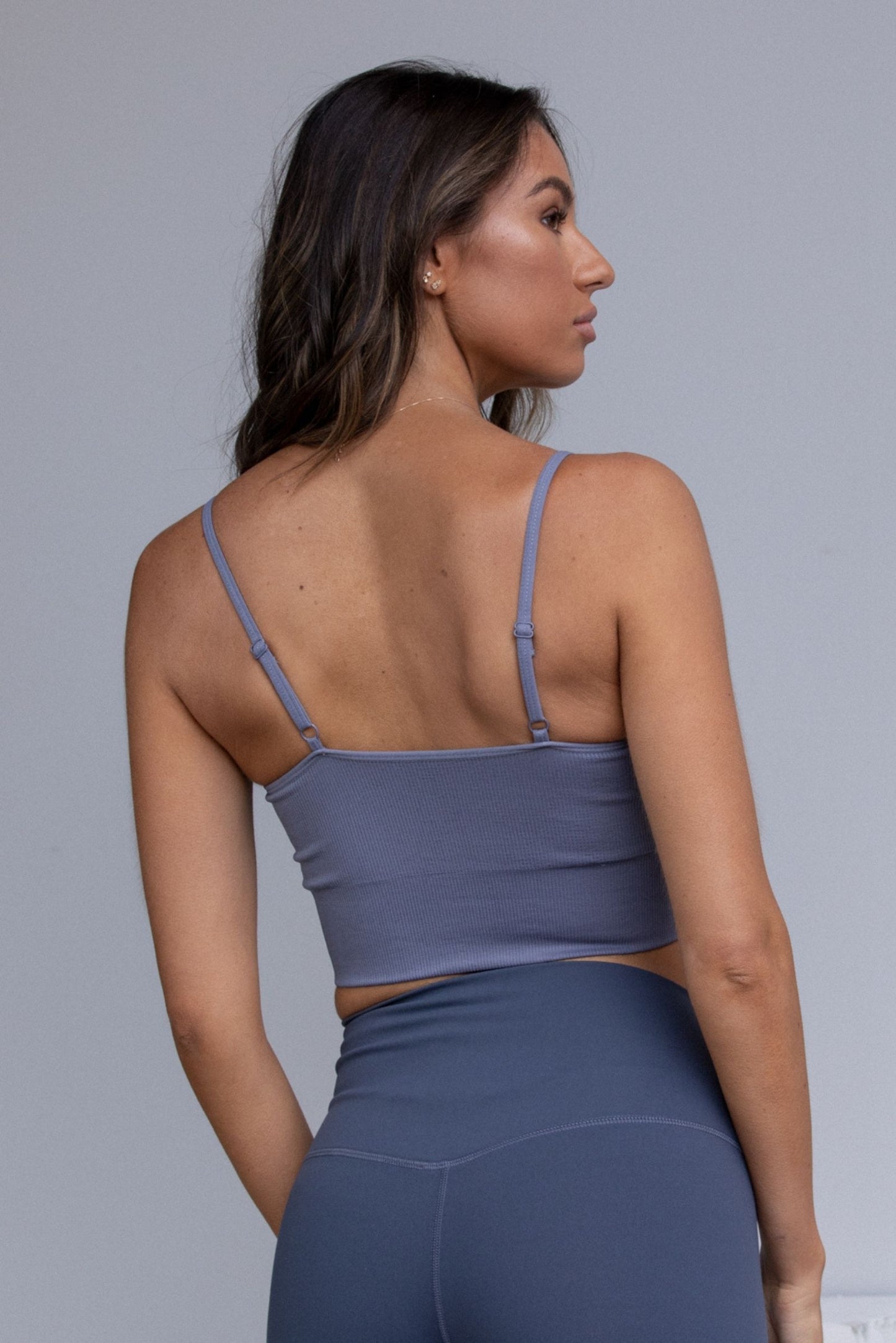 Flex Ribbed Tank with Adjustable Shoulders - Dusty Blue